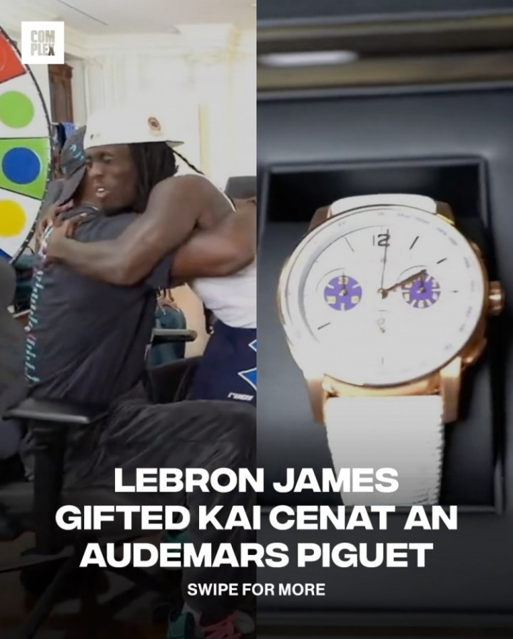 詹姆斯首先赠予KaiCenat的一只价值20万美元的爱彼手表,随后又向全体直播团队成员每人赠送了一双个人第23代签名战靴NikeLeBron23。